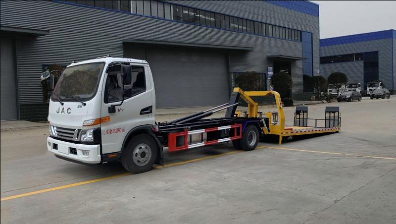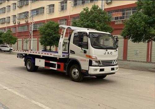 | | 江淮骏铃全落地式平板清障车    主要技术参数 |  | 产品名称: | 清障车 | 外型尺寸: | 7550×2350×2570(mm) |  | 底盘型号: | HFC1081P31K1C7ZS | 货厢尺寸: | ××(mm) |  | 总质量: | 8280(Kg) | 接近/离去角: | 25/15(°) |  | 额定质量: | (Kg) | 前悬后悬: | 1051/2154,1051/2464(mm) |  | 整备质量: | 5120(Kg) | 最高车速: | 100(km/h) |  | 发动机 | 发动机生产企业 | 排量(ml) | 功率(kw) |  | D30TCIF2 | 昆明云内动力股份有限公司 | 2977 | 120/163 |  | 排放标准: | GB3847-2005,GB17691-2018国Ⅵ |  | 轴数: | 2 | 前轮距: | 1695(mm) |  | 轴距: | 3365,3845 | 后轮距: | 1600,1785(mm) |  | 轮胎数: | 6 | 轮胎规格: | 7.50R16LT 14PR,8.25R16LT 14PR |  | 燃料种类: | 柴油 | 弹簧片数: | 9/12+6,9/9+7 |  | 轴荷: | 3000/5280 | 驾驶室乘人数: | 3 |  | 整车备注: | 该车主要用于道路故障车辆、城市违章车辆清理,主要专用装置为托臂装置,最大托举质量2965kg;选装全落地装置;防护材料Q235A碳钢,连接方式左右侧面防护装置与大梁焊接连接,后下部防护为专用装置拖臂代替,离地高370mm;该车整车长/轴距/后悬/后伸的关系为(mm):7550/3365/2154/980,7550/3845/2464/190;ABS系统控制器型号CM4XL-4S4M,ABS系统控制器生产厂家广州瑞立科密汽车电子股份有限公司,选装ABS系统型号厂家为VIE ABS-Ⅱ浙江万安科技股份有限公司。 |  | 专用性能: | 我公司专业改装生产东风福瑞卡清障车、东风多利卡托吊型清障车、东风多利卡平板型清障车、庆铃五十铃平板型清障车、东风三平柴清障车、东风140清障车、东风145清障车、东风153清障车等东风、解放、斯太尔、庆铃、江淮系列道路清障车。 清障车是在专用载货底盘基础上配装托举、拖曳、起重等装置,具有托举、牵引、起吊、升降平台、背载运输等功能,操作方便快捷、造型美观、安全可靠。广泛用于公路、公安交警、机场、码头、汽车修理行业及高速公路公司等部门,可及时、快速清理事故、故障、违章等车辆。