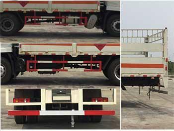 |  | 排放标准: | GB3847-2005,GB17691-2018国Ⅵ |  | 轴数: | 2 | 前轮距: | 1910(mm) |  | 轴距: | 4700,5000,5800 | 后轮距: | 1840,1860,1800,1820(mm) |  | 轮胎数: | 6 | 轮胎规格: | 275/80R22.5 18PR |  | 燃料种类: | 柴油 | 弹簧片数: | 3/- |  | 轴荷: | 6500/11500 | 驾驶室乘人数: | 3 |  | 整车备注: | 该车适用于运输危险物品为危化品运输车。主要用于运输具有独立容器(瓶)包装的液化石油气,丁烷,乙炔,乙烷,丙烷,丁烯,打火机或打火机加油器,二氧化碳,压缩氧(氮,空气,氦,氩,氖),类项号:2.1,2.2。该车运输的介质为2.1项易燃气体时,车辆采用”易燃气体”标识牌,运输的介质为2.2项非易燃无毒气体时,车辆采用”不燃气体”标识牌。整车长/轴距/前悬/后悬对应关系为(mm):9000/5000/1430/2570, 8600/4700/1430/2470,该车安装带有卫星定位功能的行驶记录仪,仅采用前盘制动器和安装ABS以及前置消声器的底盘,采用子午线轮胎,前置排气管,安装限速装置,限速80km/h。安全装置为导静电带,用于防止静电。侧防护和后防护装置材料材质为Q235B碳钢,侧防护与箱体底部焊接连接,后防护装置与车架采用焊接连接。后防护截面尺寸(mm):140×50,离地高度为500mm。ABS型号:3631010-C2000,ABS 8;ABS生产厂家:东科克诺尔商用车制动系统(十堰)有限公司。 随底盘选装驾驶室前面罩,选装侧窗玻璃;驾驶室顶部中间三个装饰灯为选装件;前雾灯为选装件;驾驶室前脸扰流罩为选装件。 |  | 专用性能: | 我厂生产的气瓶运输车可选择采用:铁瓦楞、彩钢板、铝平板、铝合金瓦楞、发泡保温。后侧可选装后液压托板,可托起0.5—5吨重物。可选:后开门、左右开门、全封闭、半封闭、仓栅。主要用于运输独立容器包装的介质:液化气罐、二氧化碳气瓶、氧气瓶、氢气瓶、氮气瓶、压缩煤气罐等2类危险品易燃气体,配置有防燃报警器等安全设施。 |  | 多方位图: |