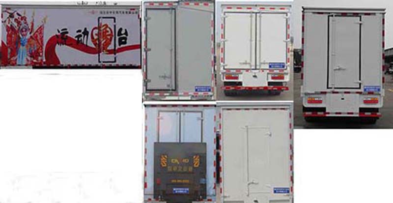 |  | 排放标准: | GB3847-2005,GB17691-2018国Ⅵ |  | 轴数: | 2 | 前轮距: | 1460,1487,1540,1590,1665(mm) |  | 轴距: | 2800,2820,3100,3300 | 后轮距: | 1370,1430,1480,1500,1540,1615,1650(mm) |  | 轮胎数: | 6 | 轮胎规格: | 195/70R15LT,6.50R16LT,7.00R16LT 8PR |  | 燃料种类: | 柴油 | 弹簧片数: | 3/3+3,4/3+3,4/6+4,9/9+6,1/1+1,3/5+3 |  | 轴荷: | 1800/2695 | 驾驶室乘人数: | 2 |  | 整车备注: | 随底盘选装驾驶室,导流罩为选装件,选装后部门结构样式,选装厢体侧面开门样式。车厢顶棚封闭,并采用衍架结构,可升降,车厢两侧板可展开,与顶棚形成整车舞台顶棚;活动舞台板可折叠于车厢内,通过展开装置展后与固定舞台台面形成整车舞台台面;底盘大梁部分设有支撑装置。ABS生产厂家:威伯科汽车控制系统(中国)有限公司,型号:ABS-E4S/4M;浙江万安科技股份有限公司,型号:VIE ABS-II;广州瑞立科密汽车电子股份有限公司,型号:CM4XL-4S/4M;芜湖伯特利汽车安全系统有限公司,型号:WBTL-ABS。侧防护采用冷弯型钢/Q235-B,焊接连接,后防护采用冷弯型钢/Q235-A,焊接连接,后防护截面高度尺寸120mm,截面宽度尺寸50mm,下边缘离地高度350mm。该车作为流动演出的、可展开成为舞台。选装的后部液压尾板收起状态离车辆最后端距离280mm。轴距/前悬/后悬一一对应。 |  | 专用性能: | 我厂生产的流动舞台车最大限度延展了舞台台口和舞台净高,顶棚承载能力强,预设了灯架和布景吊杆,专业的舞台工艺设计及工业设计。应用垂直升降专用导向机构,并设置液压支腿,使顶棚升降安全平稳,车厢及舞台面稳定平整。预留灯光、音响、字幕、幕布、电源、布景、吊点等接口,有良好的可扩展性,能适应各种恶劣环境的行驶和高强度高密度的使用。采用液压控制技术,搭台简便,舞台的地板符合专业演出需要,全部设备无须登高负重既可在10分钟安装就位。只需配备一名驾驶员和剧团灯光音响师即可,节省时间和人员费用。 |  | 多方位图: |