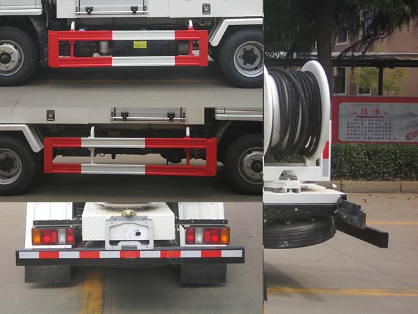 | | 蓝牌江铃顺达1.5方下水道清洗车    主要技术参数 |  | 产品名称: | 清洗车 | 外型尺寸: | 5990×1900×2090(mm) |  | 底盘型号: | JX1041TG26 | 货厢尺寸: | ××(mm) |  | 总质量: | 4495(Kg) | 接近/离去角: | 20/13(°) |  | 额定质量: | 1165(Kg) | 前悬后悬: | 1075/1555(mm) |  | 整备质量: | 3200(Kg) | 最高车速: | 100(km/h) |  | 发动机 | 发动机生产企业 | 排量(ml) | 功率(kw) |  | JX4D30B6H | 江铃汽车股份有限公司 | 2892 | 85/116 |  | 排放标准: | GB3847-2005,GB17691-2018国Ⅵ |  | 轴数: | 2 | 前轮距: | 1385(mm) |  | 轴距: | 3360 | 后轮距: | 1425(mm) |  | 轮胎数: | 6 | 轮胎规格: | 7.00R16LT 10PR,7.00R16LT 8PR |  | 燃料种类: | 柴油 | 弹簧片数: | 7/4+6,7/5+6 |  | 轴荷: | 1620/2875 | 驾驶室乘人数: | 2 |  | 整车备注: | 1.该车用于下水道清洗,装配有罐体和高压泵等;罐体有效容积: 1.2立方米,运输介质: 水,密度:1000千克/立方米,罐体外形尺寸(mm),长×长轴×短轴为:1100×1650×980; 2.侧防护装置,材料:Q235,连接方式:螺栓连接;后下部防护装置,材料:Q235,连接方式: 螺栓连接,断面尺寸(mm):100×50,离地高度400mm;3.ABS系统型号:APG3550500A,ABS系统生产厂家:浙江亚太机电股份有限公司。 |  | 专用性能: | 高压清洗车也称之为管道疏通车,是通过高压水流产生的强大压力冲开被堵塞的管道。主要组成部分为罐体、高压泵、液压系统等。是在二类原装底盘的基础上加以改装而成,上装部分为罐体,配置高压水泵工作。喷水架清洗宽度2.5m-3.5m,可任意控制,当伸缩喷杆收缩时,可实现双重水流强化清洗,适用于城市道路、广场的清洗和管道疏通、下水道清洗;左、右角喷适用于清洗路缘、护栏隔离带、人行道等。还可加装洒水装置,安装绿化洒水炮、前冲、后洒、侧喷,可进行绿化洒水、喷雾、压尘、高压冲洗路面等,紧急时可用于救火。 |  | 多方位图: |