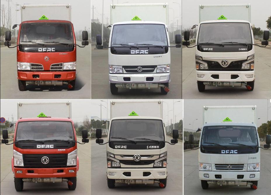|  | 排放标准: | GB3847-2005,GB17691-2018国Ⅵ |  | 轴数: | 2 | 前轮距: | 1525,1519(mm) |  | 轴距: | 2700,2950,3308 | 后轮距: | 1498,1516(mm) |  | 轮胎数: | 6 | 轮胎规格: | 7.00R16 10PR |  | 燃料种类: | 柴油 | 弹簧片数: | 6/6+5 |  | 轴荷: | 1600/2895 | 驾驶室乘人数: | 2 |  | 整车备注: | 备注:该车适用于运输危险品,厢体顶部封闭不可开启;选装右侧箱体侧门型式及位置;用于运输具有独立容器(瓶)包装的:氧化性物质:双氧水,高氯酸,硝酸铵肥料[含可燃物≤0.4%]);有机过氧化物:DCP,过氧化-二-(4-叔丁基环己基)二碳酸酯.运输介质类别和项别号:5.1和5.2仅采用底盘子午线轮胎和带ABS的底盘,该车前轮安装盘式制动器,前置排气管,安装限速装置,限速80km/h,安装带有卫星定位功能的行驶记录仪,安装安全装置导静电带;防护材料:Q235A碳钢,连接方式:左右侧面及后下部防护均采用焊接连接,后部防护断面尺寸(mm):120×50,后部防护离地高度(mm):350;CY4BK461/CY4BK161/YCY24140-60/D20TCIF1/D25TCIF1/CA4DB1-11E6/CA4DB1-13E6发动机油耗值均为:11.4(L/100km);随底盘选装驾驶室;ABS厂家及型号:襄阳东风隆诚机械有限责任公司/ABS/ASR-24V-4S/4M,随底盘扩展新款驾驶室。 |  | 专用性能: | 我厂生产的氧化性物品厢式运输车厢体顶部密封,不可开启,厢体可选装不带侧门,选装侧门型式及位置。适用于运输具有独立容器(瓶)包装的双氧水、高氯酸、硝酸铵肥料、有机过氧化物等5类危险物品。 |  | 多方位图: |
