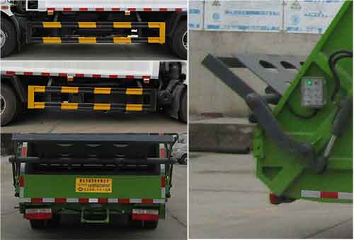 |  | 排放标准: | GB3847-2005,GB17691-2018国Ⅵ |  | 轴数: | 2 | 前轮距: | 1745(mm) |  | 轴距: | 3800,3950,4050,4100,4400 | 后轮距: | 1630,1650(mm) |  | 轮胎数: | 6 | 轮胎规格: | 245/70R19.5,8.25R20 |  | 燃料种类: | 柴油 | 弹簧片数: | 8/10+7,12/12+9 |  | 轴荷: | 4350/7645 | 驾驶室乘人数: | 3 |  | 整车备注: | 该车用于垃圾收集转运,主要专用装置为填充器,垃圾箱;整车长度/后悬/后伸对应关系:7150/2220/无后伸,7250/2320/无后伸,7380/2450/无后伸,7450/2450/后伸70,7600/2450/后伸220;选装弧形车厢,选装后部工作装置;随底盘选装前面罩,前保险杠,前组合灯具,前雾灯,排半驾驶室;侧防护装置材料为Q235,连接方式:螺栓连接固定,后防护由车辆专用作业装置代替,后部专用装置离地高450mm。ABS型号/厂家:ABS型号:ABS/ASR-24V-4S/4M,厂家:襄阳东风隆诚机械有限责任公司。发动机型号/油耗值(L/100km)对应关系:D4.0NS6B170/20.5,D4.0NS6B185/20.4,YCS04190-68/20.3,ZD30D16-6N/20.3,D25TCIF1/20.3,D30TCIF1/20.2,D40TCIF1/20.3,D45TCIF1/20.2,NV30-C6G/20.6,NV30-C6C/20.3,NV30-C6D/20.3,CY4SK161/20.4,CY4SK261/20.1,CY4SK361/20.4。 |  | 专用性能: | 我公司专业生产东风福瑞卡垃圾车、东风多利卡垃圾车、东风140垃圾车、东风145垃圾车、东风153垃圾车等,用户可自带底盘,我厂提供上装部件的生产改装。公司生产的垃圾车具有结构简单、操作稳定方便、装卸效率高、机械化程度高、节省人力的优点。广泛适用于环卫、市政、厂矿企业、物业小区、垃圾多而集中的居民区。 压缩式垃圾车由密封式垃圾厢、液压系统、操作系统组成。整车为全密封型,自行压缩、自行倾倒、压缩过程中的污水全部进入污水厢,较为彻底的解决了垃圾运输过程中的二次污染的问题,避免了给人们带来不便,关键部件采用进口部件,具有压力大、密封性好、操作方便、安全等优点。 可选配后挂桶翻转机构或垃圾斗翻转机构。