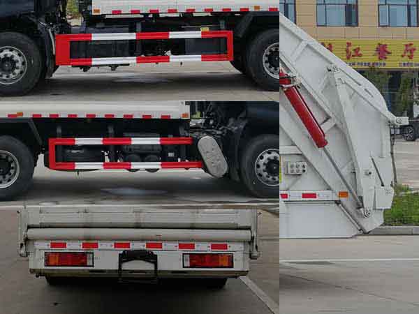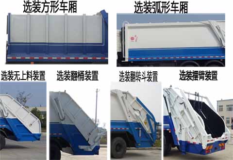 |  | 排放标准: | GB3847-2005,GB17691-2018国Ⅵ |  | 轴数: | 3 | 前轮距: | 2010,2040,2070(mm) |  | 轴距: | 4350+1350,5350+1350,5700+1350 | 后轮距: | 1860/1860,1880/1880(mm) |  | 轮胎数: | 10 | 轮胎规格: | 295/80R22.5 18PR,11.00R20 18PR |  | 燃料种类: | 柴油 | 弹簧片数: | 3/10,3/4 |  | 轴荷: | 7000/18000(二轴组) | 驾驶室乘人数: | 2,3 |  | 整车备注: | 1、该车主要专用装置由箱体、压缩系统组成,用于垃圾的收集与清运。该车可选装方形或弧形箱体,选装全密封盖装置,选装后部工作装置。选装工作装置时,外形长(mm)/前悬(mm)/后悬(mm)/后伸(mm)/整备质量(kg)对应关系:①无上料装置:10030/1480/2850/-/15300,10030/1500/2830/-15300;②全密封斗装,摆臂装置:10230/1480/2850/200/15750,10230/1500/2830/200/15750;③翻桶装置,半密封斗装置:10430/1480/2850/400/15750,10430/1500/2830/400/15750。仅采用轴距( mm)4350+1350。2、侧防护采用冷弯型钢/Q235,螺栓连接;后防护由专用装置替代,下边缘离地高500mm。3、随底盘选装驾驶室前角扰流板;选装驾驶室前面罩、前保险杠及前部灯具和后视镜,选装驾驶室顶部中间三个装饰灯,选装前雾灯,驾驶室侧窗选装树脂装饰板。安装带有卫星定位功能的行驶记录仪。ABS型号/生产厂家:3631010-C2000/东科克诺尔商用车制动系统(十堰)有限公司,ABS 8/东科克诺尔商用车制动系统(十堰)有限公司,4460046450/威伯科汽车控制系统(中国)有限公司。发动机与油耗值(L/100km)对应关系:D6.7NS6B290/32,DDi75E350-60/31.7,DDi75E300-60/31.7。 |  | 专用性能: | 公司专业生产东风福瑞卡垃圾车、东风多利卡垃圾车、东风140垃圾车、东风145垃圾车、东风153垃圾车等,用户可自带底盘,我厂提供上装部件的生产改装。公司生产的垃圾车具有结构简单、操作稳定方便、装卸效率高、机械化程度高、节省人力的优点。广泛适用于环卫、市政、厂矿企业、物业小区、垃圾多而集中的居民区。 压缩式垃圾车由密封式垃圾厢、液压系统、操作系统组成。整车为全密封型,自行压缩、自行倾倒、压缩过程中的污水全部进入污水厢,较为彻底的解决了垃圾运输过程中的二次污染的问题,避免了给人们带来不便,关键部件采用进口部件,具有压力大、密封性好、操作方便、安全等优点。 可选配后挂桶翻转机构或垃圾斗翻转机构。