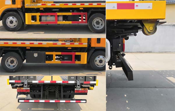 |  | 排放标准: | GB3847-2005,GB17691-2018国Ⅵ |  | 轴数: | 2 | 前轮距: | 1665,1744,1760,1804,1833,1840(mm) |  | 轴距: | 3300,3400,3550,3800 | 后轮距: | 1650,1750,1790,1800,1811,1835,1860,1888,1900(mm) |  | 轮胎数: | 6 | 轮胎规格: | 7.00R16 10PR,7.50R16 8PR,8.25R16 6PR |  | 燃料种类: | 柴油 | 弹簧片数: | 1/1+1,4/3+3,8/10+8,9/11+8,9/9+6,3/5+3 |  | 轴荷: | 1800/2695 | 驾驶室乘人数: | 2,3 |  | 整车备注: | 托举质量500千克。随底盘选装驾驶室,选装伸缩板结构,选装车尾部托架型式,选装后部支撑板结构样式,选装后部安装托板结构。ABS生产厂家:威伯科汽车控制系统(中国)有限公司,型号:ABS-E4S/4M;浙江万安科技股份有限公司,型号:VIE ABS-II;广州瑞立科密汽车电子股份有限公司,型号:CM4XL-4S/4M;芜湖伯特利汽车安全系统有限公司,型号:WBTL-ABS。侧防护装置材料:Q235B,连接方式:螺栓连接;后下部防护装置材料:Q235B,连接方式:螺栓连接,防护截面尺寸(mm)120×50,离地高400mm。该车主要装置为托举平板,用于清除道路障碍。车长/轴距/前悬/后悬对应关系为(毫米):5995/3300/1150/1545,5995/3300/1190/1505,5995/3300/1230/1465, 5995/3400/1150/1445,5995/3400/1190/1405,5995/3400/1230/1365,