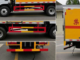 |  | 排放标准: | GB3847-2005,GB17691-2018国Ⅵ |  | 轴数: | 2 | 前轮距: | 1525,1519(mm) |  | 轴距: | 2700,2950,3308 | 后轮距: | 1498,1516(mm) |  | 轮胎数: | 6 | 轮胎规格: | 7.00R16 10PR |  | 燃料种类: | 柴油 | 弹簧片数: | 6/6+5 |  | 轴荷: | 1600/2895 | 驾驶室乘人数: | 2 |  | 整车备注: | 该车适用于运输危险品。厢体顶部封闭,不可开启。选装右侧箱体不开门,选装侧门型式及位置。仅采用底盘子午线轮胎和带ABS的底盘,该车前轮安装盘式制动器,前置排气管,装配限速装置,限速80km/h。安装带有卫星定位功能的行驶记录仪。安全装置为导静电带,用于防止静电。防护材料:Q235B碳钢,连接方式:左右侧面及后下部防护均采用焊接连接,后部防护断面尺寸(mm):100×50,后部防护离地高度(mm):440。整车长/轴距/后悬对应关系为(mm):5510/2700/1755,5915/2950/1910,5995/3308/1632。该车主要用于运输具有独立容器(瓶)包装的含铜废物,含镍废物,含铅废物,含铬废物,废弃电池,废矿物油.类项号:9.危险废物编号: HW21,HW22, HW26,HW31,HW46,HW49,HW08等,CY4BK461/CY4BK161/YCY24140-60/D20TCIF1/D25TCIF1/CA4DB1-11E6/CA4DB1-13E6发动机油耗值均为11.4(L/100km)。ABS厂家及型号:襄阳东风隆诚机械有限责任公司/ABS/ASR-24V-4S/4M。 |  | 专用性能: | 我公司生产的杂项危险物品厢式运输车采用全金属整体骨架式,车厢壁板的内部材料用导电性能好、摩擦不起火花的铝板制作,地板用导静电橡胶,板块夹层装有阻燃隔热材料,防火阻燃性好。厢内具有缓冲防撞、防静电火花、烟火报警、防雨通风、防盗等功能,整车为箱体机构并标注9类危险品标识图案,外型美观、经久耐用。 |  | 多方位图: |