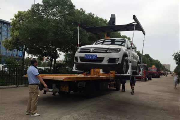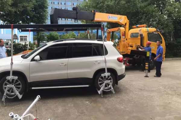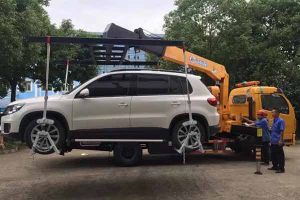 8.准备行驶前,放开事故车手刹,保证被拖牵车的着地车轮能自由转动,不能被档位和刹车限制,否则会造成托臂和被拖车的损坏。