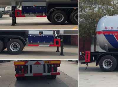 | | 58.3方异丁烷2.1类液化气体运输半挂车   主要技术参数 |  | 产品名称: | 液化气体运输半挂车 | 外型尺寸: | 13000X2500X3995(mm) |  | 底盘型号: |  | 货厢尺寸: | ××(mm) |  | 总质量: | 40000(Kg) | 接近/离去角: | -/20(°) |  | 额定质量: | 28567(Kg) | 前悬后悬: | -/1710(mm) |  | 整备质量: | 11433(Kg) | 最高车速: | (km/h) |  | 轴数: | 3 | 前轮距: | (mm) |  | 轴距: | 7400+1310+1310 | 后轮距: | 1840/1840/1840(mm) |  | 轮胎数: | 12 | 轮胎规格: | 11.00R20 12PR,12R22.5 12PR |  | 燃料种类: |  | 弹簧片数: | -/7/7/7,-/4/4/4 |  | 轴荷: | -/24000(三轴组) | 驾驶室乘人数: |  |  | 整车备注: | 危险货物运输车的车辆类型为:FL,运输介质:异丁烷,单位容积充装质量为0.49吨/立方米,类项号:2.1;罐体有效容积:58.3立方米罐体外形尺寸(长×外径)(mm):12611×Φ2483直线段长11265);采用适用于牵引危险品运输半挂车的牵引车;防护材料:Q235A碳钢,连接方式:左右侧面及后下部防护均采用焊接连接,后部防护断面尺寸(mm):130×50,后部防护离地高度(mm):520;ABS生产厂家:广州市科密汽车制动技术开发有限公司,ABS型号:CM2XL-4S/2K(4S/2M)。 |  | 专用性能: |  |  | 多方位图: |