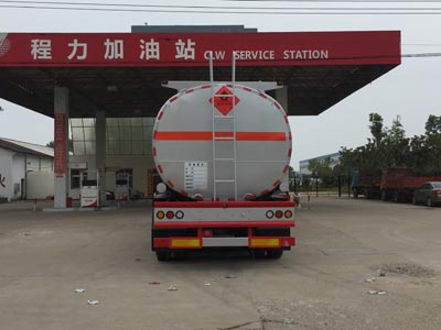 | | 38.4方煤油3类半挂油罐车   主要技术参数 |  | 产品名称: | 运油半挂车 | 外型尺寸: | 11350×2500×3850(mm) |  | 底盘型号: |  | 货厢尺寸: | ××(mm) |  | 总质量: | 40000(Kg) | 接近/离去角: | -/16(°) |  | 额定质量: | 30400(Kg) | 前悬后悬: | -/1480(mm) |  | 整备质量: | 9600(Kg) | 最高车速: | (km/h) |  | 发动机 | 发动机生产企业 | 排量(ml) | 功率(kw) |  | 排放标准: |  |  | 轴数: | 3 | 前轮距: | -(mm) |  | 轴距: | 5800+1320+1320 | 后轮距: | 1840(mm) |  | 轮胎数: | 12 | 轮胎规格: | 11.00R20 12PR,12R22.5 12PR |  | 燃料种类: |  | 弹簧片数: | -/8/8/8,-/4/4/4,-/-/-/- |  | 轴荷: | -/24000(三轴组) | 驾驶室乘人数: |  |  | 整车备注: | 采用适用于牵引危险品运输半挂车的牵引车。选装不同样式的挡泥板。运输介质:柴油,煤油,汽油,介质密度分别为:0.83吨/立方米, 0.80吨/立方米0.70吨/立方米;类项号:3,罐体有效容积:38.4立方米,罐体外形尺寸(长×长轴×短轴)(mm):前半部为3700x2500x1960,后半部为7250x2500x2160。防护材料:Q235A碳钢,连接方式:左右侧面及后下部防护均采用焊接连接,后部防护断面尺寸(mm):140×50,后部防护离地高度(mm):420,ABS生产厂家:广州市科密汽车制动技术开发有限公司,ABS型号:CM2XL-4S/2K(4S/2M)。 |  | 专用性能: |  |  | 多方位图: |